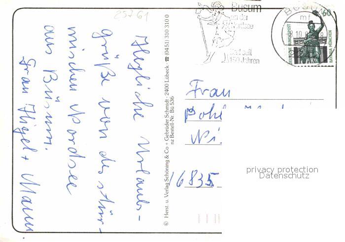 72692793 alte Postkarte Buesum Nordseebad Fliegeraufnahme Schleuse Strand Alleestrasse Hafen Fischkutter postalisch gelaufen Erhaltung siehe scans [FriedD77] KatCode: 11110001051013