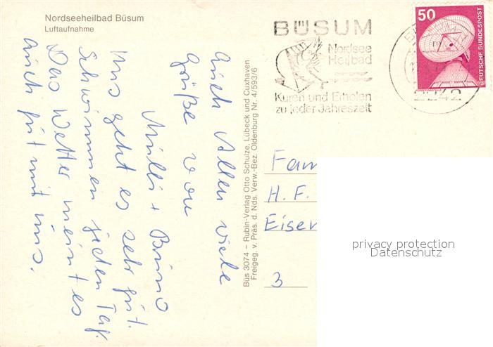 73160106 alte Postkarte Buesum Nordseebad Fliegeraufnahme Strand Hotels Hafen postalisch gelaufen Erhaltung siehe scans [KathaD81] KatCode: 11110001051013
