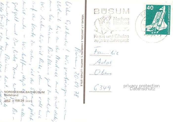 73247897 alte Postkarte Buesum Nordseebad Fliegeraufnahme Suedstrand postalisch gelaufen Erhaltung siehe scans [KathaD81] KatCode: 11110001051013