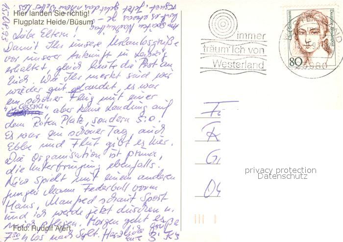 73648294 alte Postkarte Buesum Nordseebad Flugplatz Heide Fliegeraufnahme postalisch gelaufen Erhaltung siehe scans [WerneD78] KatCode: 11110001051013