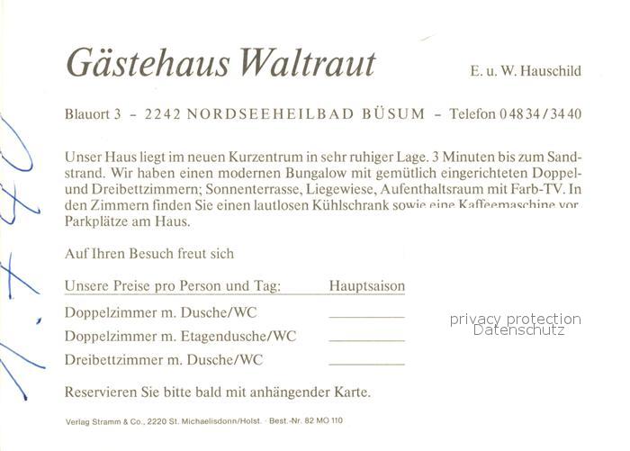 73086282 Buesum Nordseebad Gaestehaus Waltraut postalisch nicht gelaufen Werbekarte (keine Postkarte) Erhaltung siehe scans [KathaD81] KatCode: 11110001051013