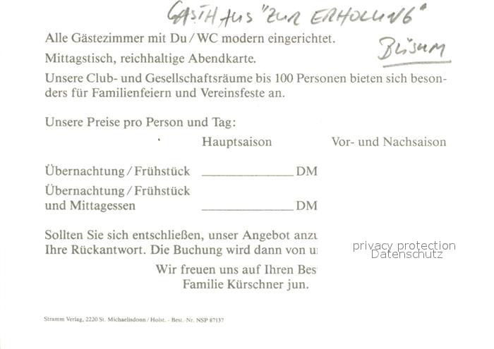 73099060 Buesum Nordseebad Gasthaus Zur Erholung postalisch nicht gelaufen Werbekarte (keine Postkarte) Erhaltung siehe scans [KathaD81] KatCode: 11110001051013