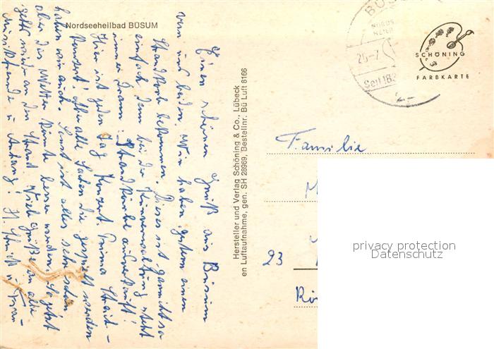 73159877 alte Postkarte Buesum Nordseebad Hafen Fliegeraufnahme postalisch gelaufen Erhaltung siehe scans [FriedD77] KatCode: 11110001051013