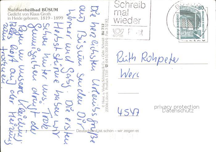 72016174 alte Postkarte Buesum Nordseebad Hafen Leuchtturm Gedicht von Klaus Groth postalisch gelaufen Erhaltung siehe scans KatCode: 11110001051013