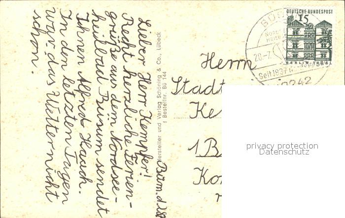 72463632 alte Postkarte Buesum Nordseebad Hafen Mole Alleestr Promenade Strand Minigolf Seehund Fischkutter auf der Sandbank postalisch gelaufen Erhaltung siehe scans KatCode: 11110001051013