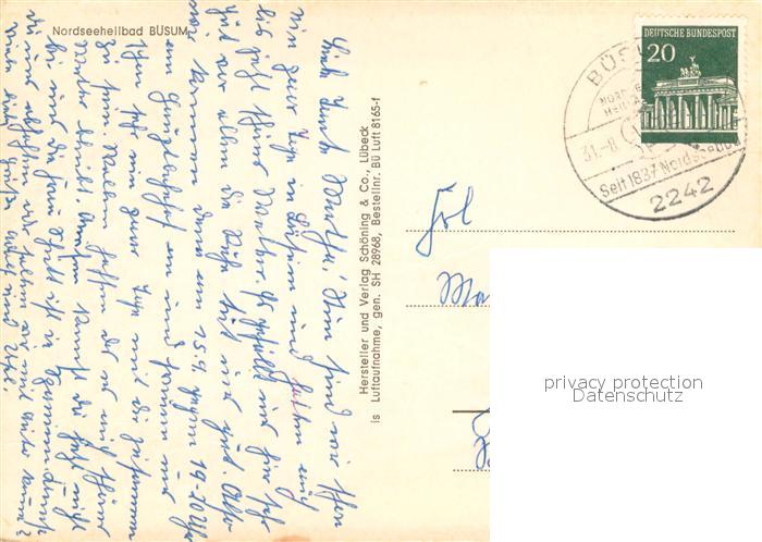 73734498 alte Postkarte Buesum Nordseebad Hafen Strand Kuestenort postalisch gelaufen Fliegeraufnahme Erhaltung siehe scans [FriedD77] KatCode: 11110001051013