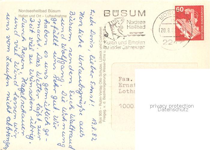 73724851 alte Postkarte Buesum Nordseebad Hafen und Ort Fliegeraufnahme postalisch gelaufen Erhaltung siehe scans [WerneD78] KatCode: 11110001051013