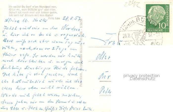 43353029 alte Postkarte Buesum Nordseebad Hafenschleuse Liegehalle Strand Camping Erlengrund Kurhotel Seegarten postalisch gelaufen Erhaltung siehe scans [KathaD81] KatCode: 11110001051013