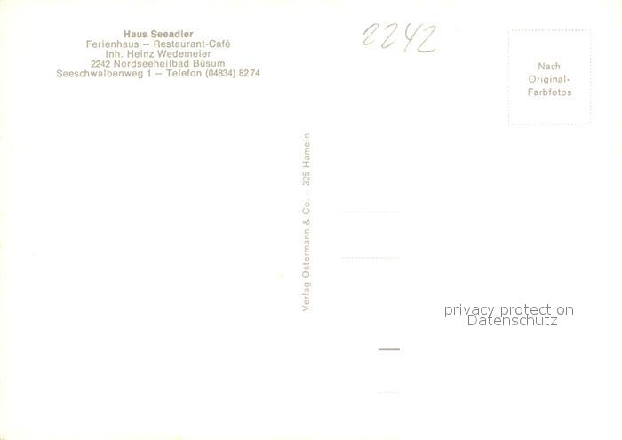73086264 Buesum Nordseebad Haus Seeadler Ferienhaus Restaurant Cafe postalisch nicht gelaufen Erhaltung siehe scans [KathaD81] KatCode: 11110001051013