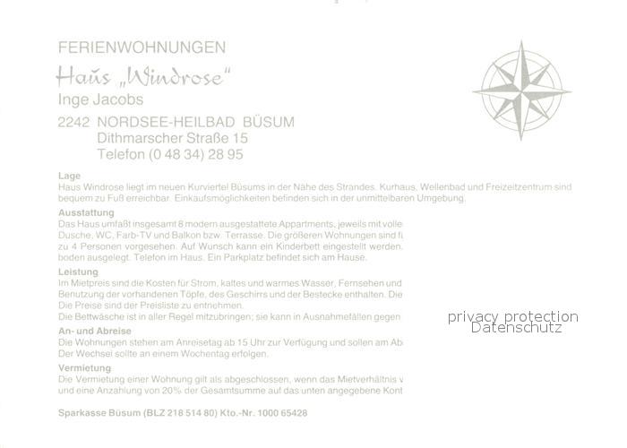 73099065 Buesum Nordseebad Haus Windrose postalisch nicht gelaufen Werbekarte (keine Postkarte) Erhaltung siehe scans [KathaD81] KatCode: 11110001051013