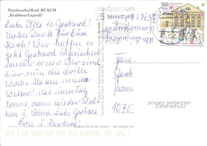 72263047 alte Postkarte Buesum Nordseebad Krabben Express Kanal Fischkutter postalisch gelaufen Erhaltung siehe scans KatCode: 11110001051013