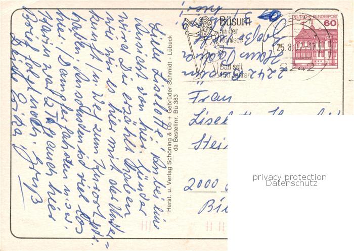 73781561 alte Postkarte Buesum Nordseebad Kuestenpanorama Strand Faehrschiff Leuchtturm Hafen postalisch gelaufen Erhaltung siehe scans [FriedD77] KatCode: 11110001051013