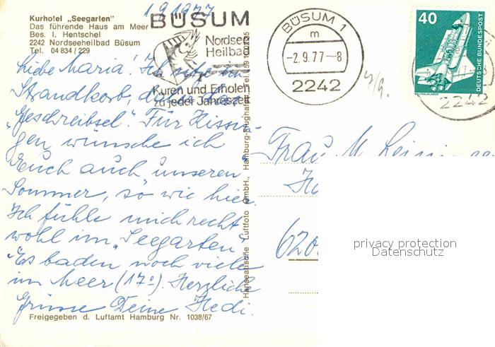 72843914 alte Postkarte Buesum Nordseebad Kurhotel Seegarten Fliegeraufnahme postalisch gelaufen Erhaltung siehe scans [NatalD47] KatCode: 11110001051013