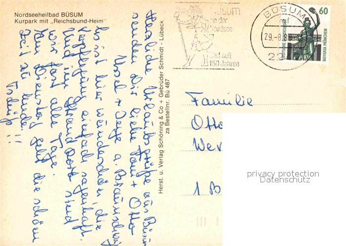 72751127 alte Postkarte Buesum Nordseebad Kurpark mit Reichsbundheim postalisch gelaufen Erhaltung siehe scans [FriedD77] KatCode: 11110001051013