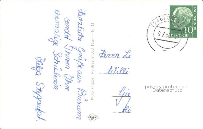 72428594 alte Postkarte Buesum Nordseebad Leuchtturm Hafen Abendstimmung Segeljolle Strand postalisch gelaufen Erhaltung siehe scans KatCode: 11110001051013