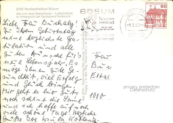 72580165 alte Postkarte Buesum Nordseebad Luftaufnahme Alte Neue Seeschleuse Sandstrand Perlebucht postalisch gelaufen Erhaltung siehe scans [KathaD79] KatCode: 11110001051013