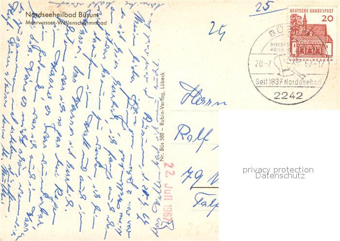 73032224 alte Postkarte Buesum Nordseebad Meerwasser-Wellenschwimmbad postalisch gelaufen Erhaltung siehe scans [PaolaD17] KatCode: 11110001051013