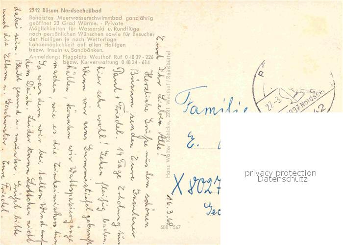 72698953 alte Postkarte Buesum Nordseebad Meerwasserschwimmbad postalisch gelaufen Erhaltung siehe scans [KathaD79] KatCode: 11110001051013