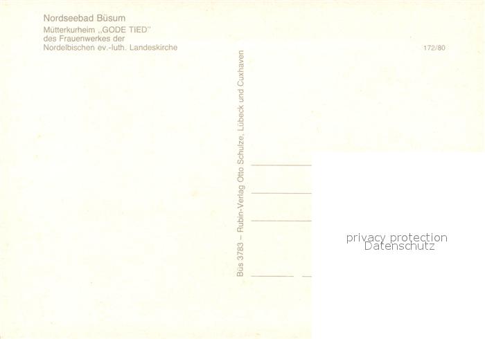 73124051 Buesum Nordseebad Muetterkurheim Gode Tied postalisch nicht gelaufen Erhaltung siehe scans [NatalD47] KatCode: 11110001051013