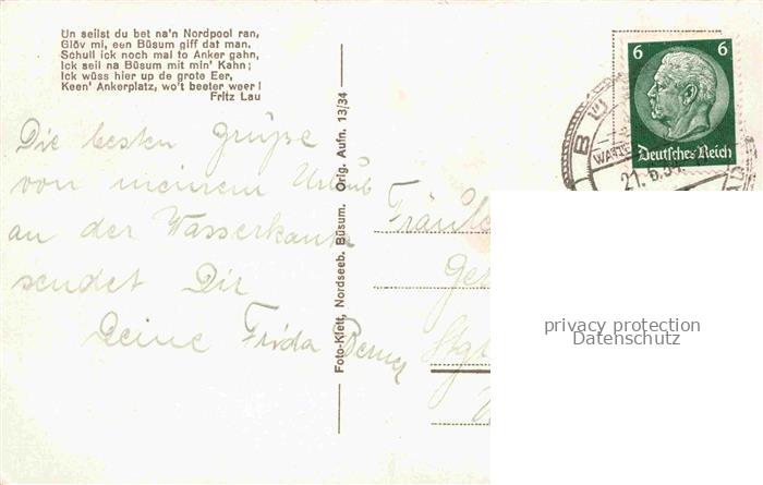 74075442 alte Postkarte BueSUM Nordseebad Panorama Blick vom Leuchtturm auf den Suedstrand postalisch gelaufen Erhaltung siehe scans [FriedD77] KatCode: 11110001051013