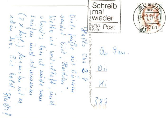 73924848 alte Postkarte Buesum Nordseebad Panorama Strand Hotels Leuchtturm Fussgaengerzone Hafen postalisch gelaufen Erhaltung siehe scans [FriedD77] KatCode: 11110001051013