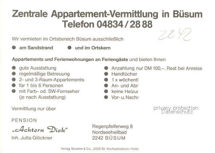 73204387 Buesum Nordseebad Pension Achtern Diek Ferienappartments postalisch nicht gelaufen Werbekarte (keine Postkarte) Erhaltung siehe scans [FriedD77] KatCode: 11110001051013