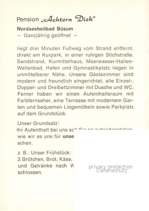 73086300 Buesum Nordseebad Pension Achtern Diek postalisch nicht gelaufen Werbekarte (keine Postkarte) Erhaltung siehe scans [KathaD81] KatCode: 11110001051013