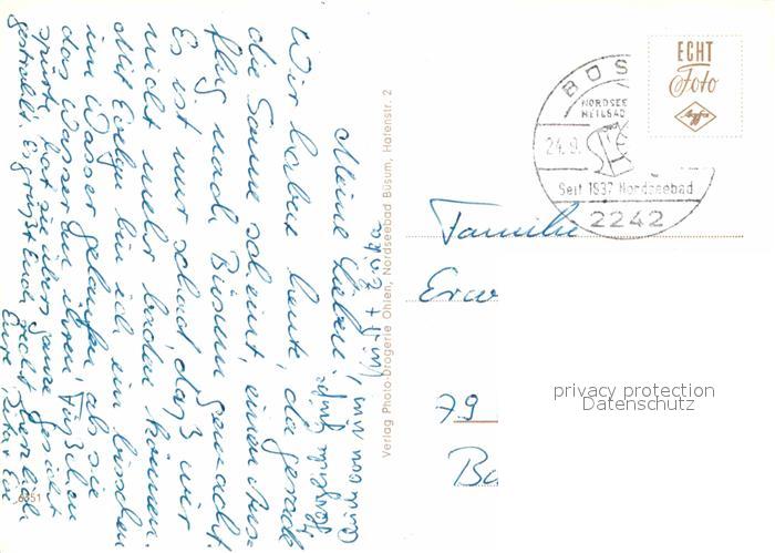 72831704 alte Postkarte Buesum Nordseebad Strandpromenade Netzflicken Schleusenausfahrt postalisch gelaufen Erhaltung siehe scans [KathaD81] KatCode: 11110001051013