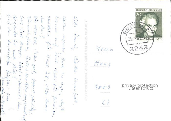 71935276 alte Postkarte Buesum Nordseebad Suedstrand Sonnenbaden Spiel und Tanz Hotel Seegarten Deichpromenade postalisch gelaufen Erhaltung siehe scans KatCode: 11110001051013