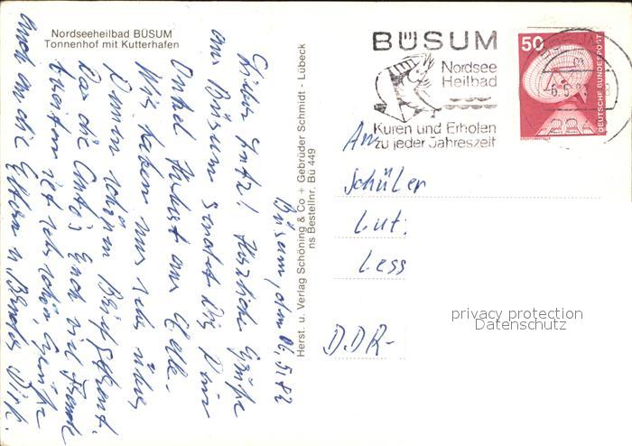 72524108 alte Postkarte Buesum Nordseebad Tonnenhof Kutterhafen postalisch gelaufen Erhaltung siehe scans KatCode: 11110001051013