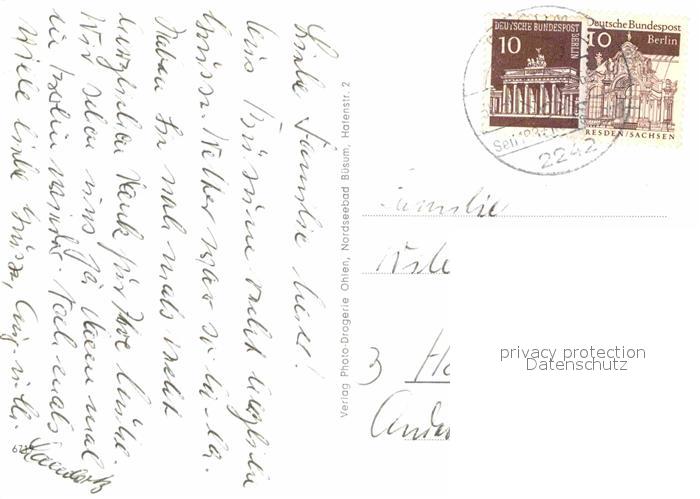 72811486 alte Postkarte Buesum Nordseebad Wellenschwimmbad postalisch gelaufen Erhaltung siehe scans [FriedD77] KatCode: 11110001051013
