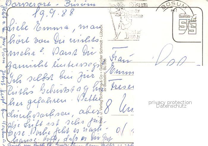 73159464 alte Postkarte Buesum Nordseebad Windsurfen Hafen Konzertpavillon Strand Strassenpartien Wappen postalisch gelaufen Erhaltung siehe scans [FriedD77] KatCode: 11110001051013