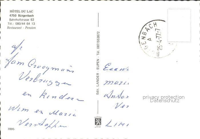 72254666 carte postale Buetgenbach Hotel du Lac Restaurant Pension postalisch gelaufen Erhaltung siehe scans KatCode: 11070062000377