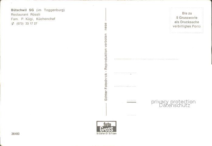 11629868 Buetschwil Restaurant Roessli postalisch nicht gelaufen Erhaltung siehe scans Alte Ansichtskarte Postkarte hz_F Katcode 11470190585774