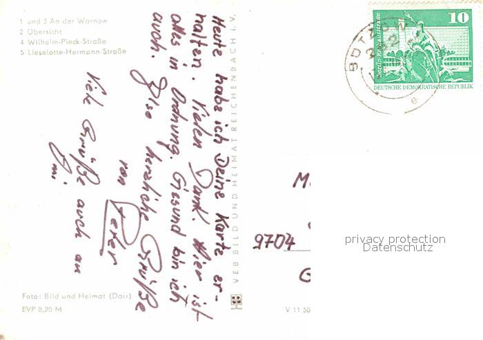 72728379 alte Postkarte Buetzow Partie an der Warnow Wilhelm Pieck Strasse Lieselotte Hermann Strasse postalisch gelaufen Erhaltung siehe scans [FriedD77] KatCode: 11110013053013
