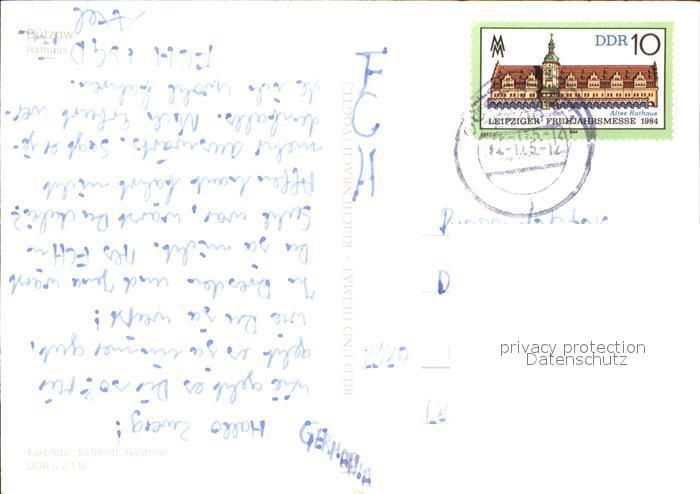 72576137 alte Postkarte Buetzow Rathaus Brunnen postalisch gelaufen Erhaltung siehe scans [FriedD77] KatCode: 11110013053013