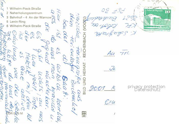 72704471 alte Postkarte Buetzow Wilh Pieck Str Naherholungszentrum Bahnhof An der Warnow Leninring postalisch gelaufen Erhaltung siehe scans [FriedD77] KatCode: 11110013053013