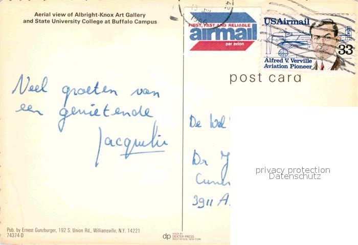 72638130 old postcard Buffalo New York Aerial view of Albright Knox Art Gallery and State University College at Buffalo Campus postalisch gelaufen Erhaltung siehe scans [WerneD78] KatCode: 14140340000000