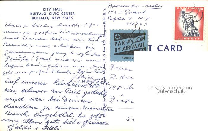 11693262 old postcard Buffalo New York City Hall postalisch gelaufen Erhaltung siehe scans KatCode: 14140340000000