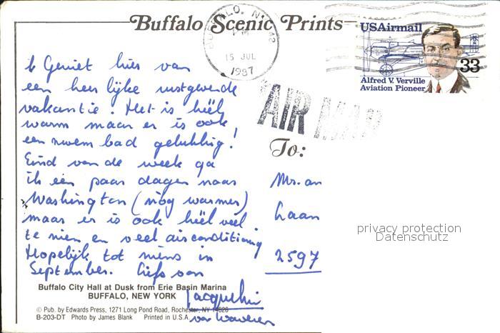 72597703 old postcard Buffalo New York City Hall at Dusk postalisch gelaufen Erhaltung siehe scans [LiesaD40] KatCode: 14140340000000