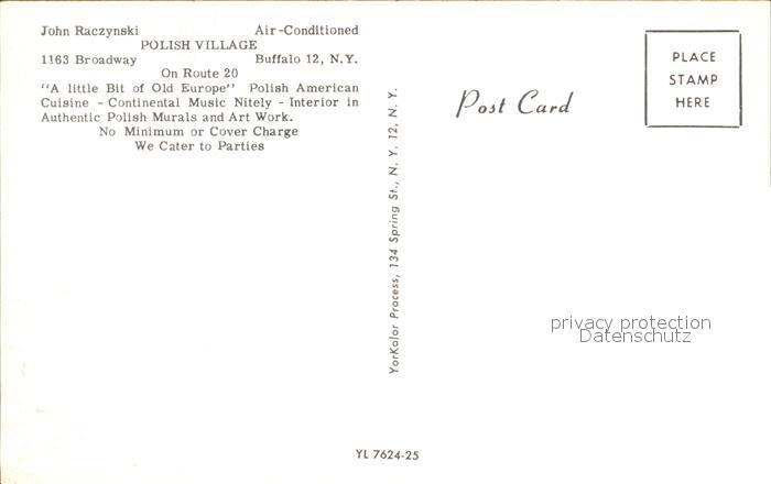 72133462 Buffalo New York Polish Village Restaurant postalisch nicht gelaufen Erhaltung siehe scans KatCode: 14140340000000