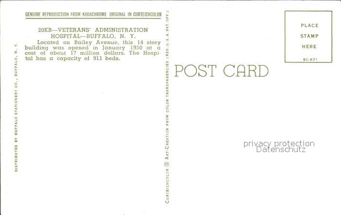 72922168 Buffalo New York Veterans Administration Hospital postalisch nicht gelaufen Erhaltung siehe scans [WerneD48] KatCode: 14140340000000