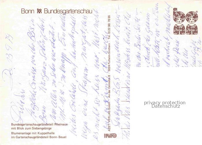 74053492 BUGA Bundesgartenschau Bonn Beuel Rheinaue Siebengebirge Kuppelhalle postalisch nicht gelaufen Erhaltung siehe scans [IrynaD87] KatCode: 22100000000100