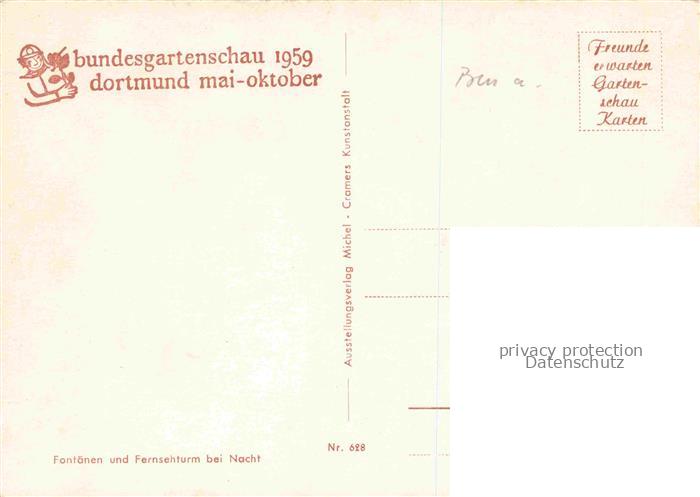 74054549 BUGA Bundesgartenschau Dortmund Fontaenen Fernsehturm bei Nacht postalisch nicht gelaufen Erhaltung siehe scans [IrynaD87] KatCode: 22100000000100