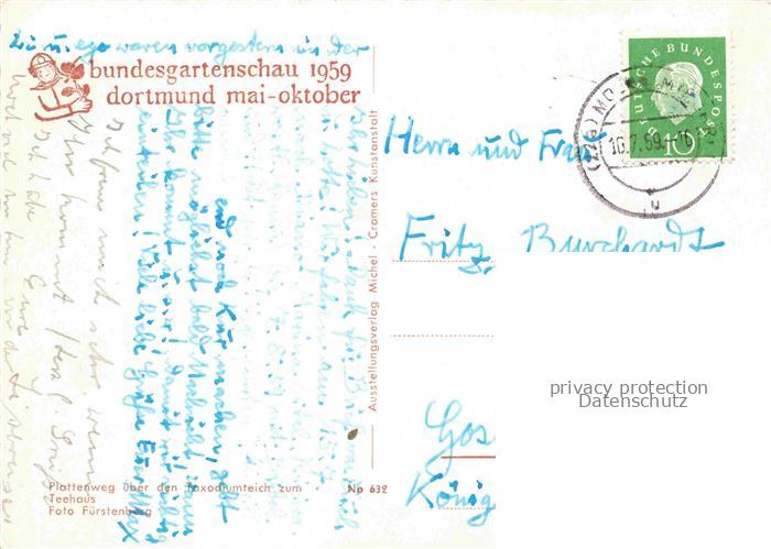 74054485 alte Postkarte BUGA Bundesgartenschau Dortmund Plattenweg Teehaus postalisch gelaufen Erhaltung siehe scans [IrynaD87] KatCode: 22100000000100