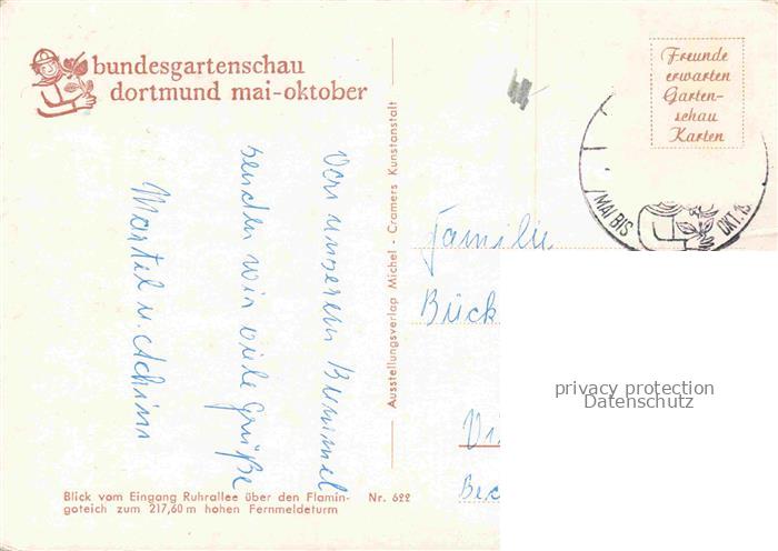 74054632 alte Postkarte BUGA Bundesgartenschau Dortmund Ruhr alle Flamingo Teich postalisch gelaufen Erhaltung siehe scans [SanaeD93] KatCode: 22100000000100
