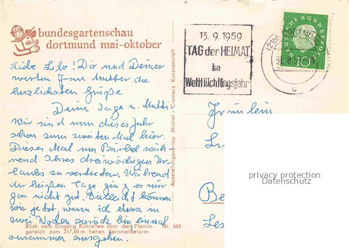 74055063 alte Postkarte BUGA Bundesgartenschau Dortmund Ruhrallee Flamingo Teich postalisch gelaufen Erhaltung siehe scans [IrynaD87] KatCode: 22100000000100