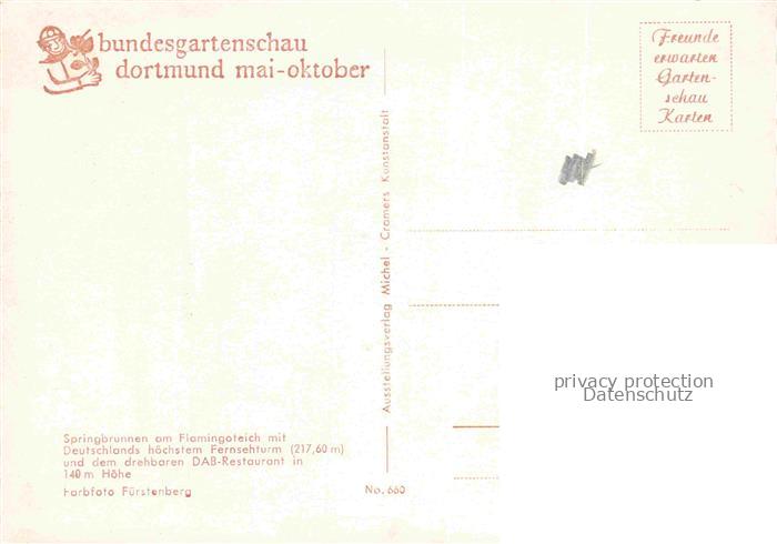 74056909 BUGA Bundesgartenschau Dortmund Springbrunnen Flamingo Teich Fernsehturm postalisch nicht gelaufen Erhaltung siehe scans [SanaeD93] KatCode: 22100000000100