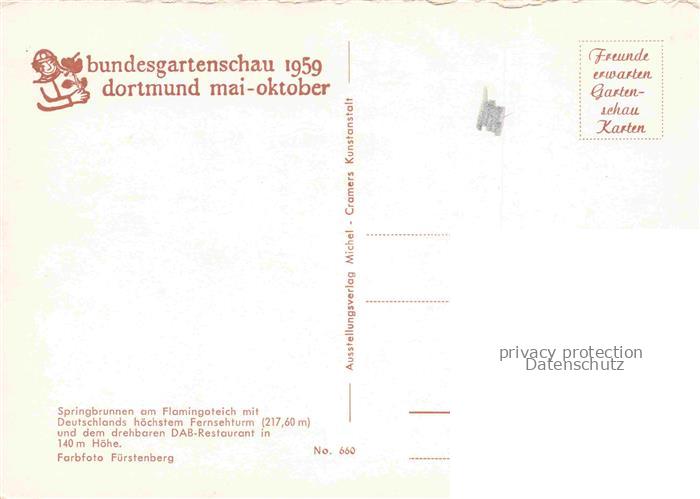74056899 BUGA Bundesgartenschau Dortmund Springbrunnen Flamingos Teich Fernsehturm postalisch nicht gelaufen Erhaltung siehe scans [SanaeD93] KatCode: 22100000000100