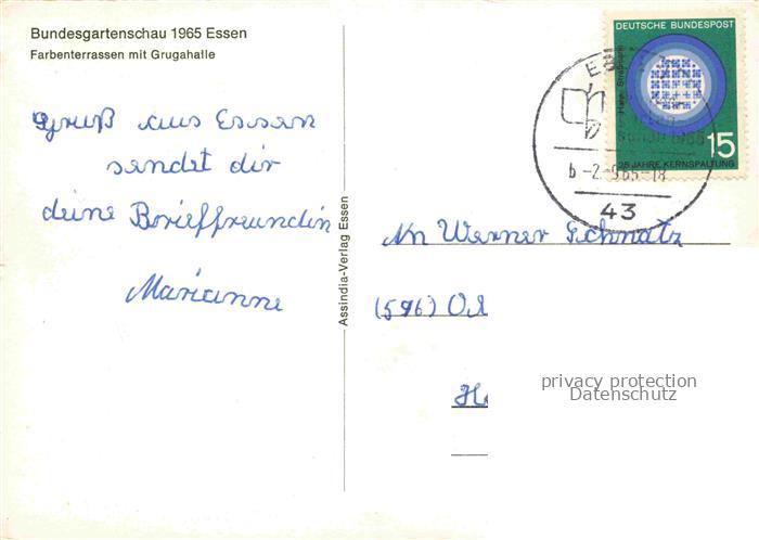 74054178 alte Postkarte BUGA Bundesgartenschau Essen Farbenterasse Grugahalle postalisch gelaufen Erhaltung siehe scans [IrynaD87] KatCode: 22100000000100